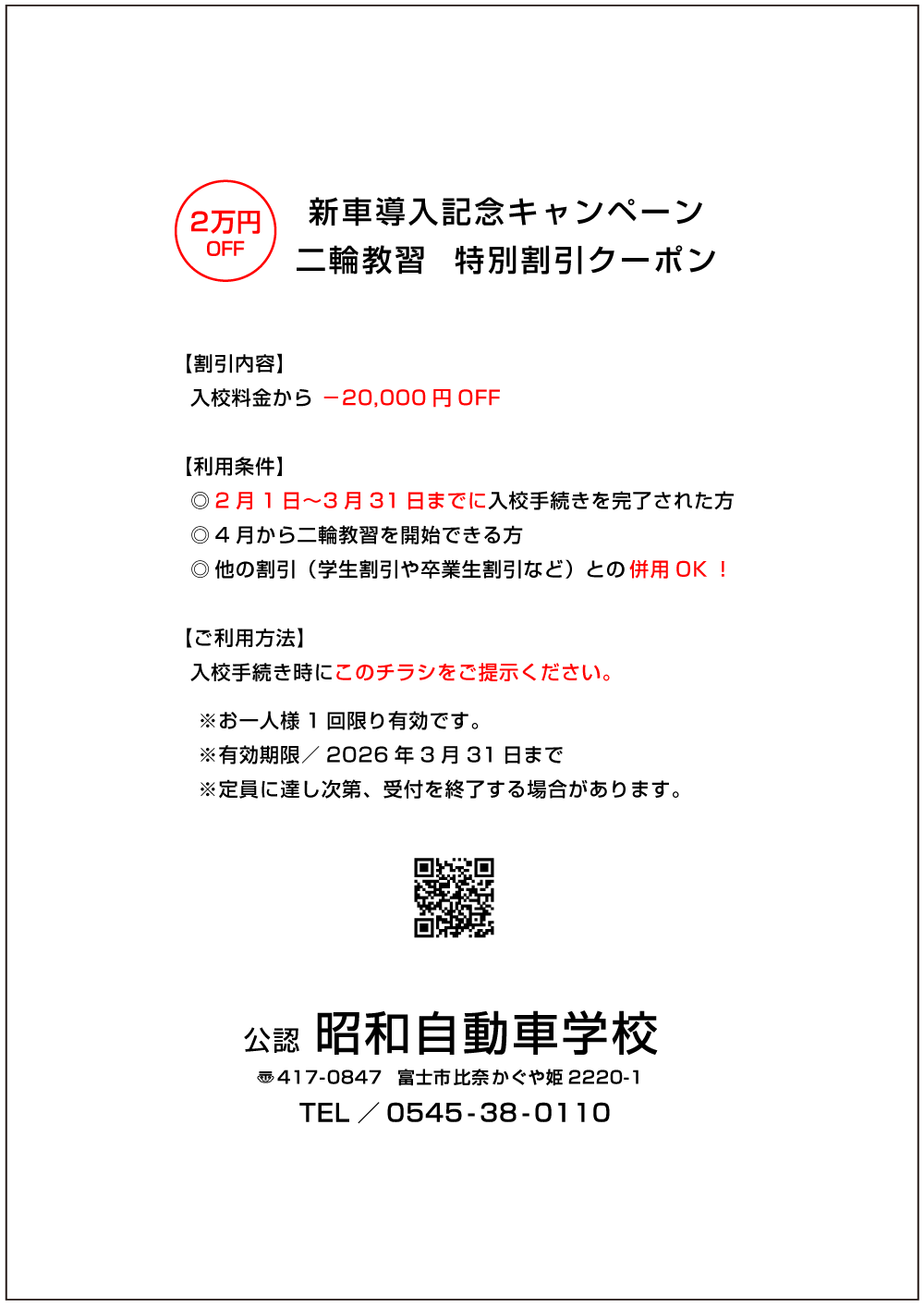 ◎入校手続きの際、下記のチラシをご持参ください。