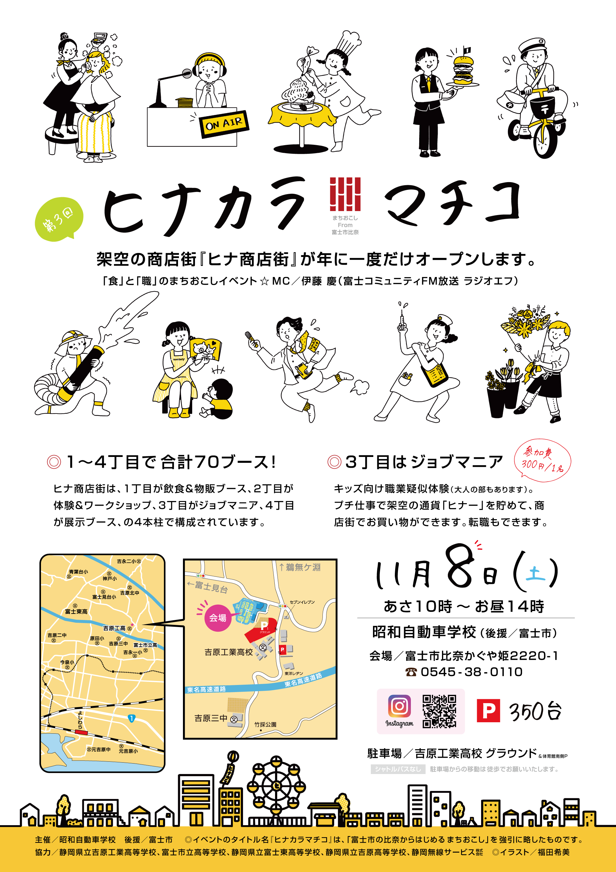 架空だけれど、年に1日だけ実在する『ヒナ商店街』に、キッズ向け職業体験エリアが誕生! ミッション達成の報酬・架空通貨「ヒナー」でお買い物ができます。「食」と「職」のまちおこしイベントです!