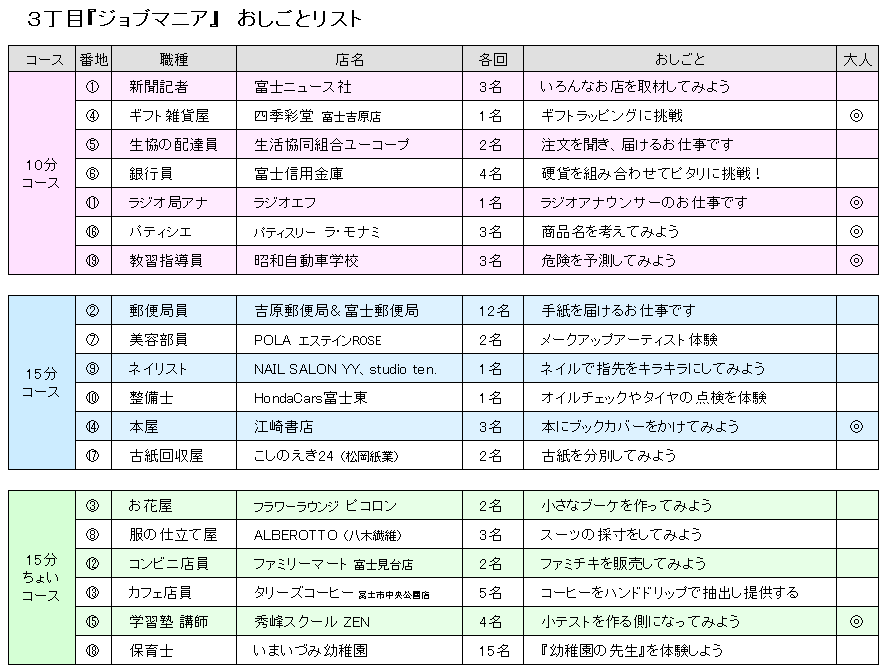 ★今回もジョブマニア(大人の部)もあります。腕が鳴りますね。